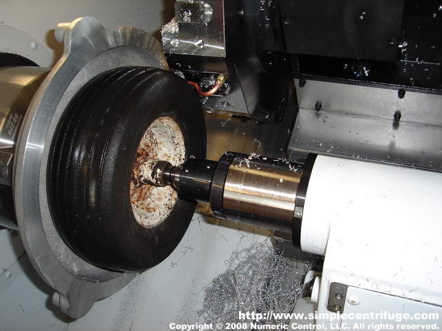 Turning the lids has been an adventure. This is our latest fixture. It's fast and creates a clean chatter free finish. Yes that's a lawn mower tire!