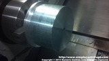 After sawing a 34 lb billet on the band saw it is first faced on the manual lathe.