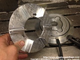 The turned blank is then installed on the fixture and the vacuum holds it down.